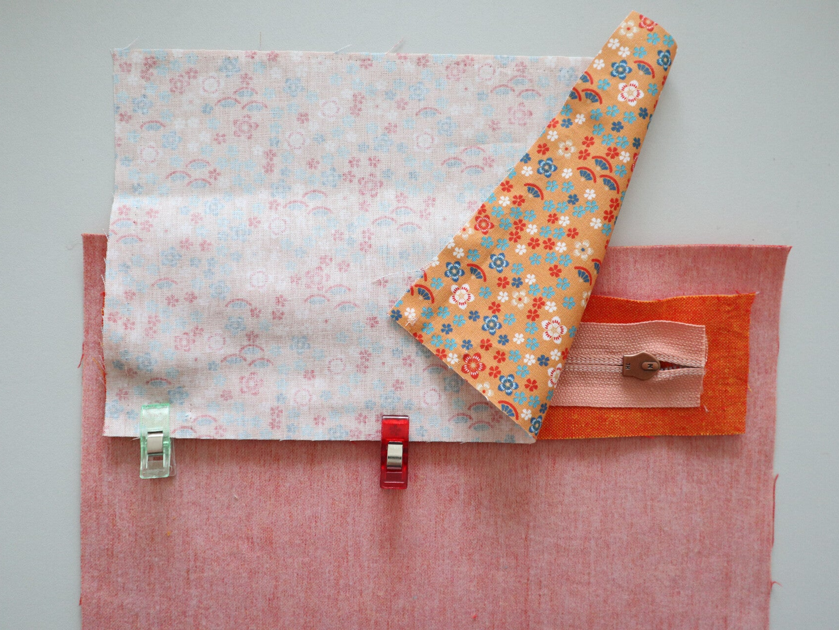 - Besatz-Schnittteil: gleiche Breite wie die beiden Reißverschluss-Fachteile x ca. 6 cm Höhe