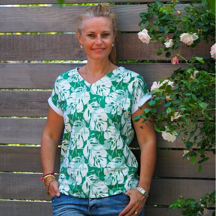 - 80 cm dehnbaren Stoff wie Jersey, Strick, etc. für die Größen 36-44